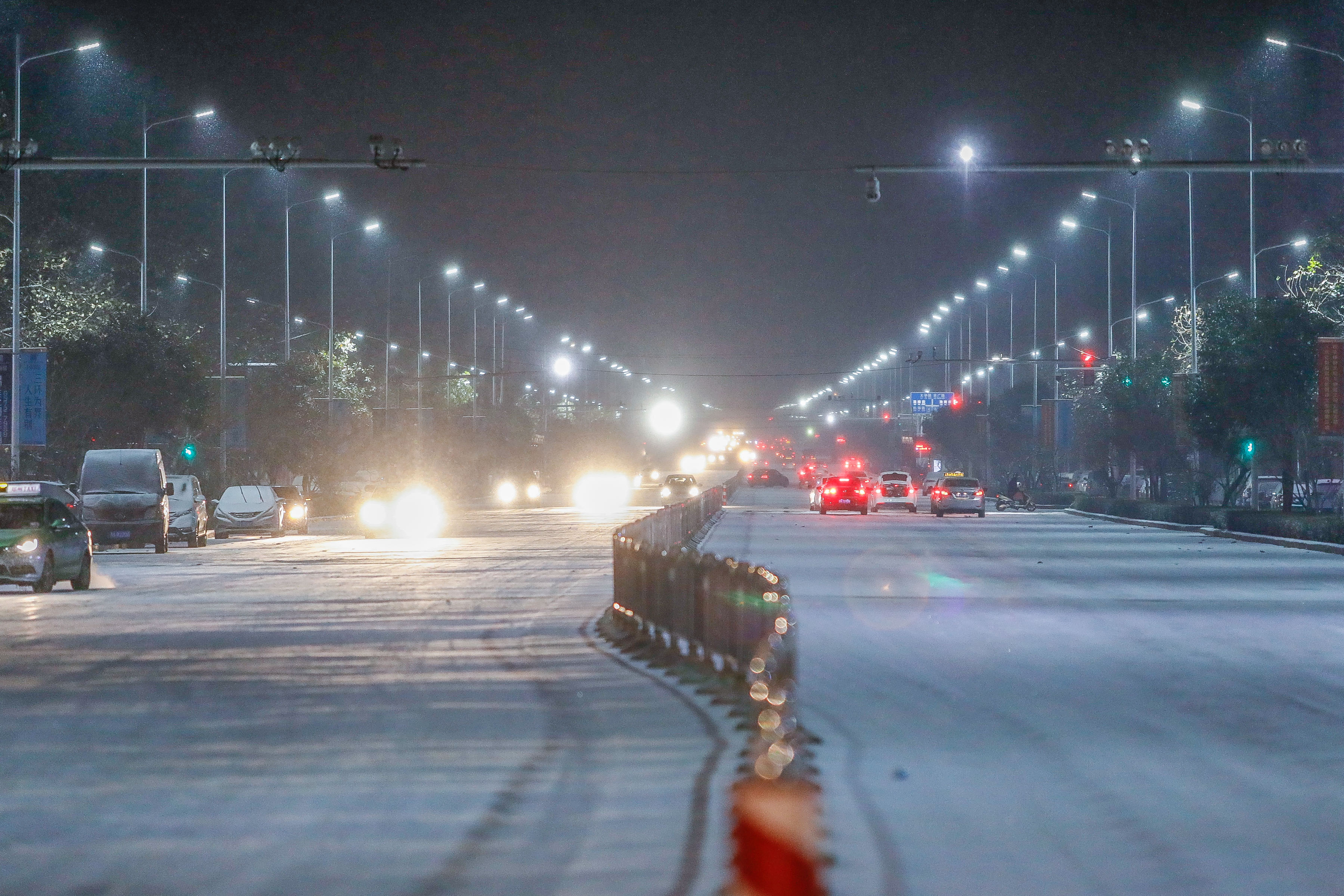 道路基本已被白雪覆盖,伴随着夜晚的低温早上出行的广大市民要注意路面结冰。