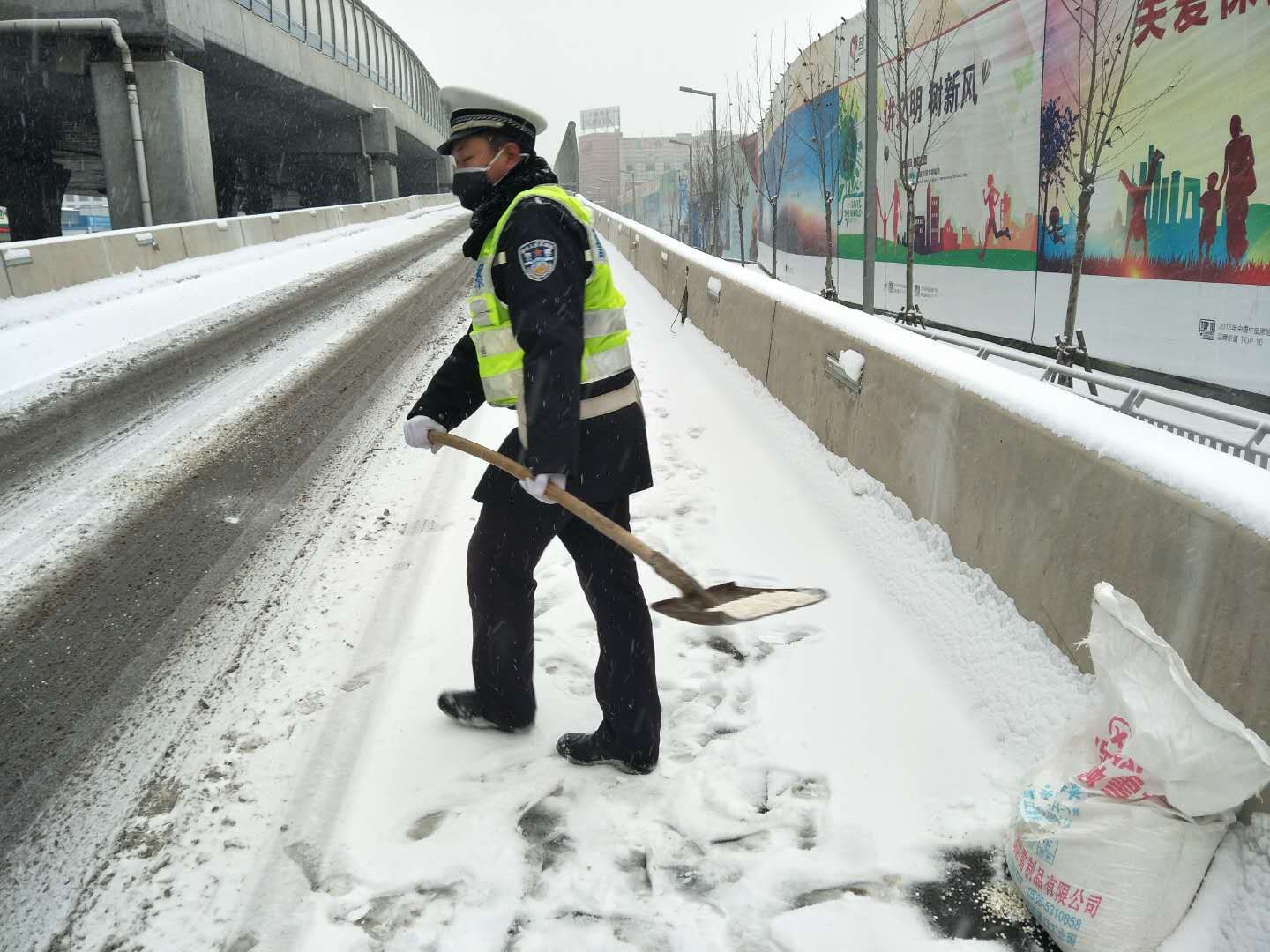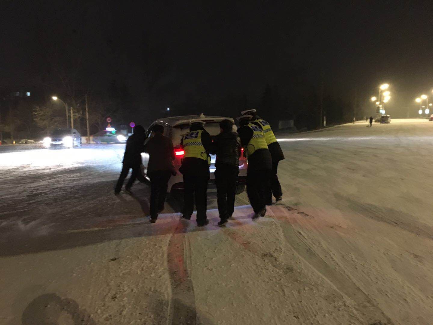 4日凌晨,新密市公安局来集派出所的民警在大雪中成功处置引导了一起因雪天路滑导致的交通事故,及时转移事故车辆内物资,挽救了人民群众的财产安全。