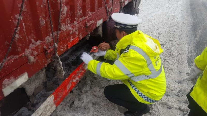 3日10时许,安阳高速支队滑县大队民警喻文勇带领杜松伟、徐明凯、张建彬、索新宇共4名辅警在辖区路段组织养护部门进行除雪工作,行进到K1871公里处时,发现一辆拉满橘子红色货车在路上抛锚,司机师傅趴在车底瑟瑟发抖,手和脸冻得通红,经询问得知,由于煞车管爆裂漏气,刹不住车。喻文勇等人立即取出随车工具箱,帮助司机师傅简单修理后,护送该车到服务区做进一步检修,司机李师傅非常感动,拿出一袋橘子表示感谢,被民警婉言谢绝。