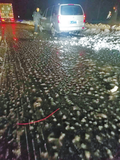 【原因】山区高速上斜坡较多,路面结冰易打滑
