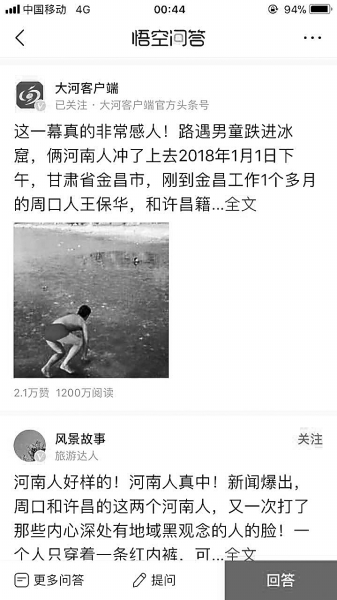 14个小时大河客户端官方头条号在“悟空问答”一个端口阅读量1200余万点赞2.1万个