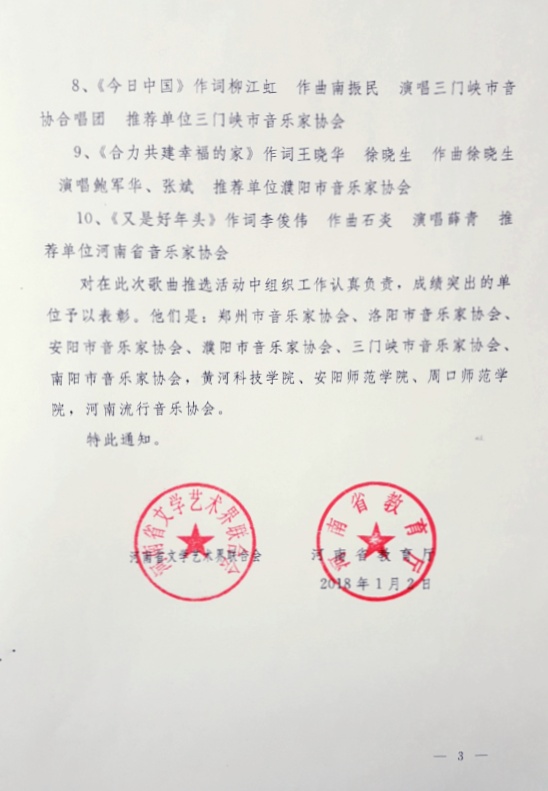 河南当代歌曲创作精品工程"听见中国听见你"2017年度优秀歌曲