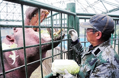 在“动物食堂”,记者发现,几乎每个“餐盒”里,都放有一到两根大葱。郭循继说,这是根据气候添加的,主要作用是驱寒预防流感。