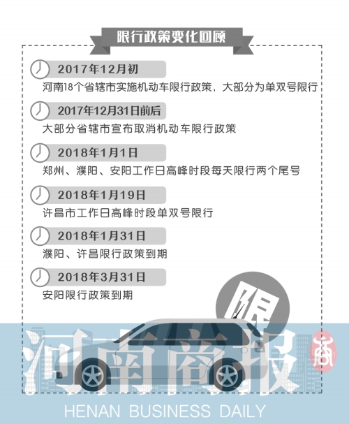 2017年12月初,河南18个省辖市实施机动车限行政策,大部分单双号限行