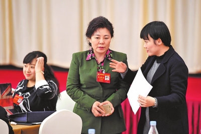 1月24日,会议间隙,出席省政协十二届一次会议的委员们交换意见,研究政府工作报告。记者史长来 摄