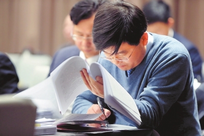 ▼1月27日,出席省十三届人大一次会议的代表全神贯注,仔细记录,认真履行代表职责。⑨6本报记者郭宇摄