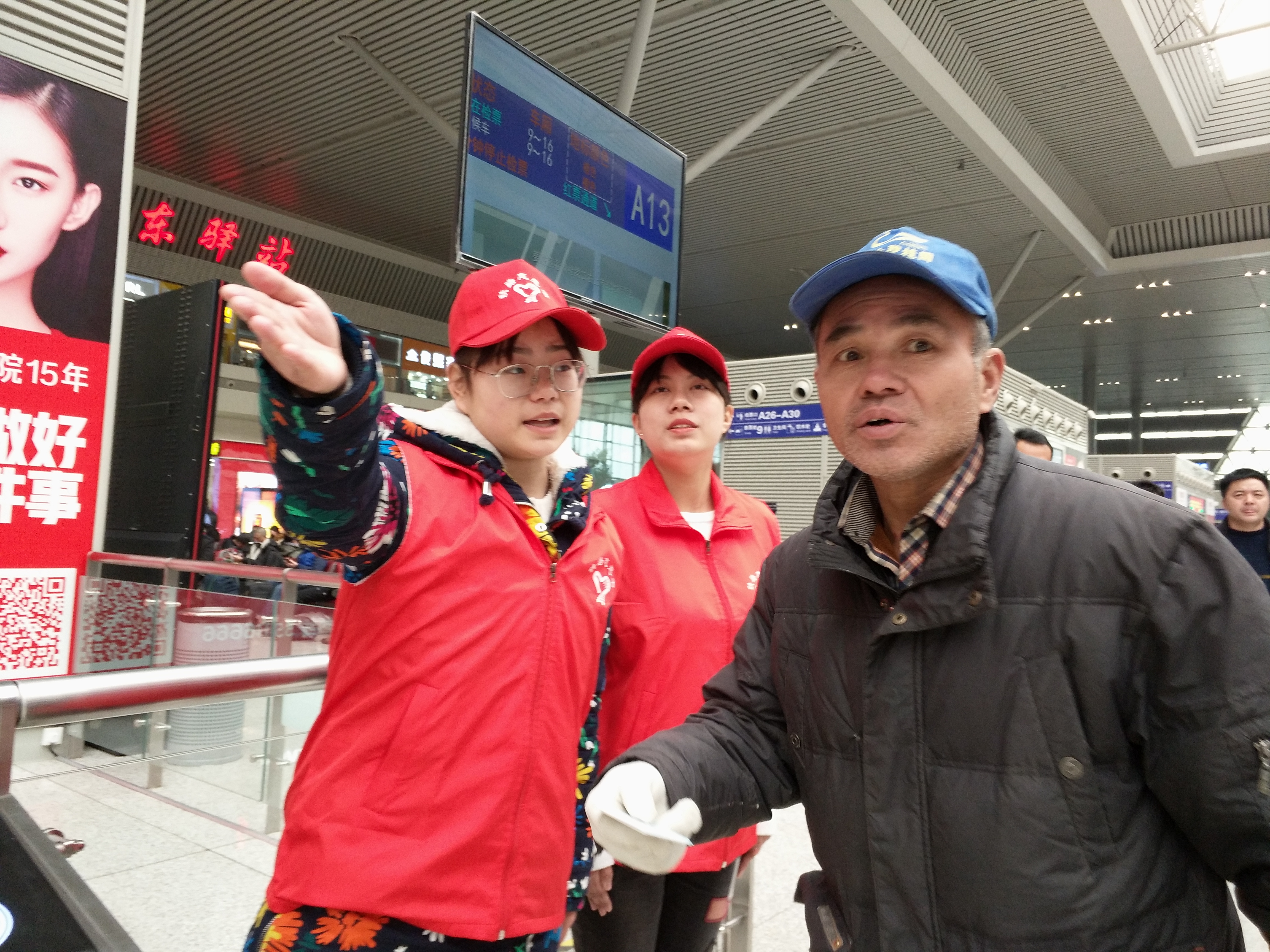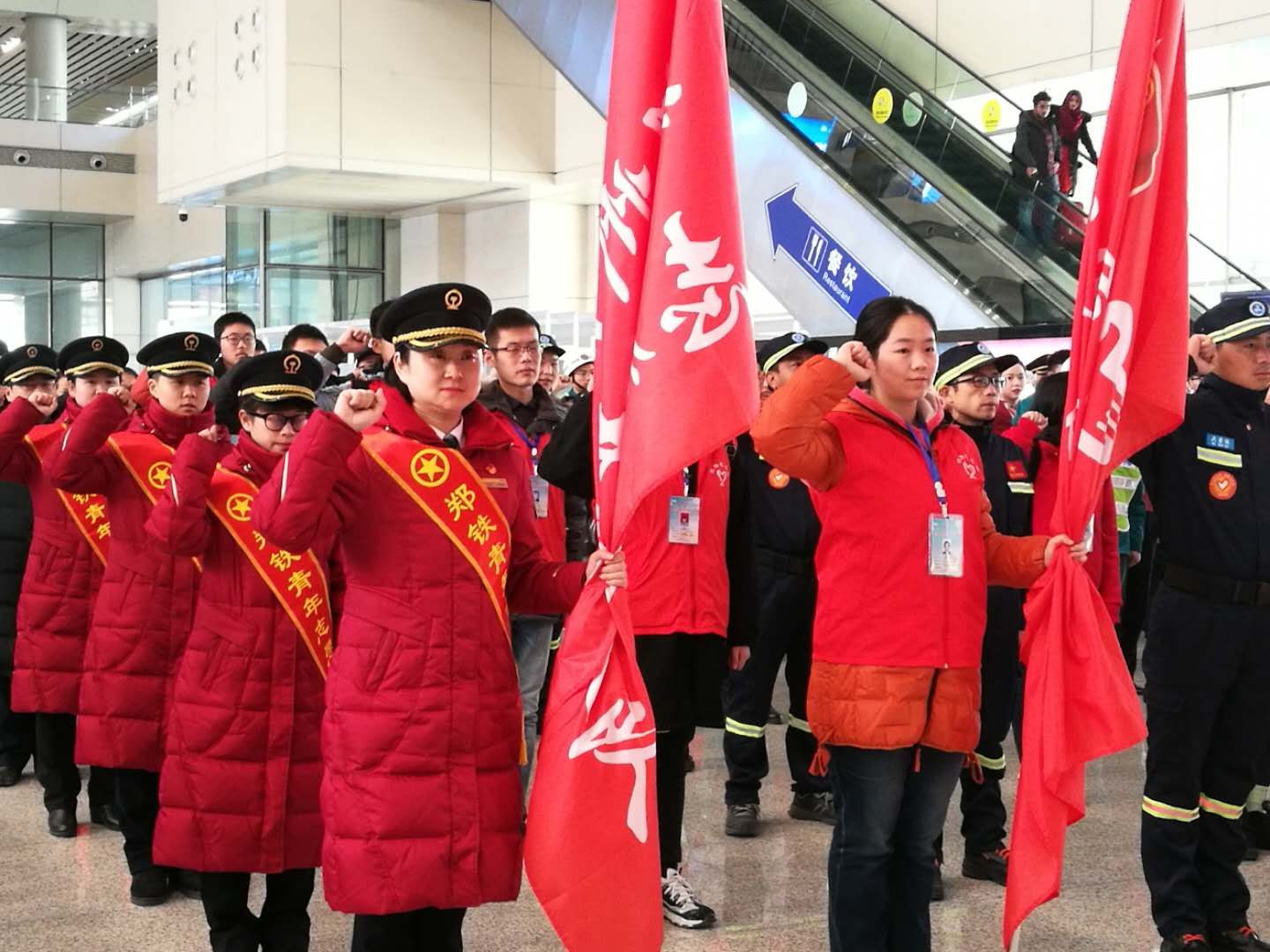 郑州东站志愿者为旅客指路