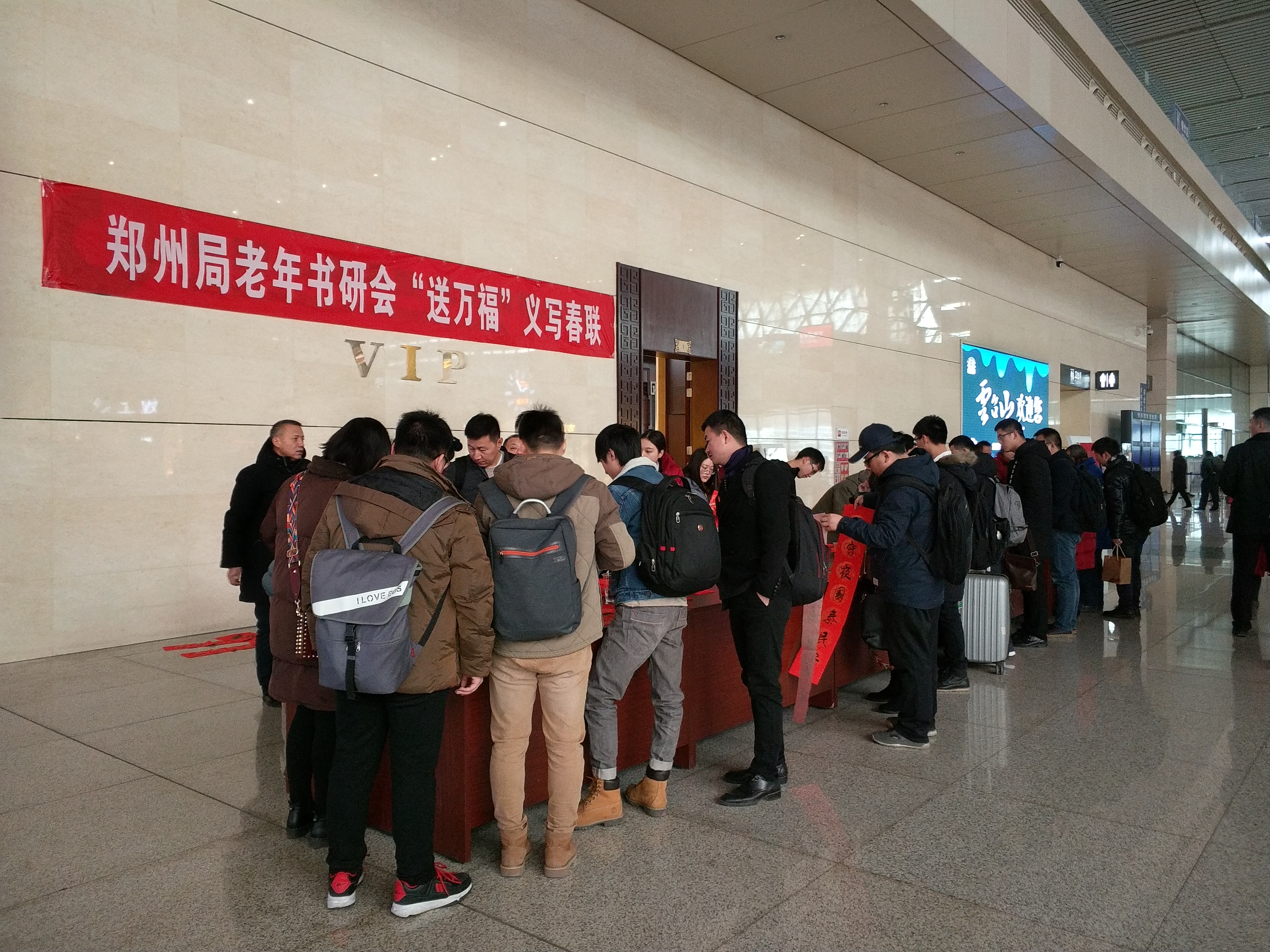 郑州铁路局集团老年书研会免费为旅客写春联送祝福