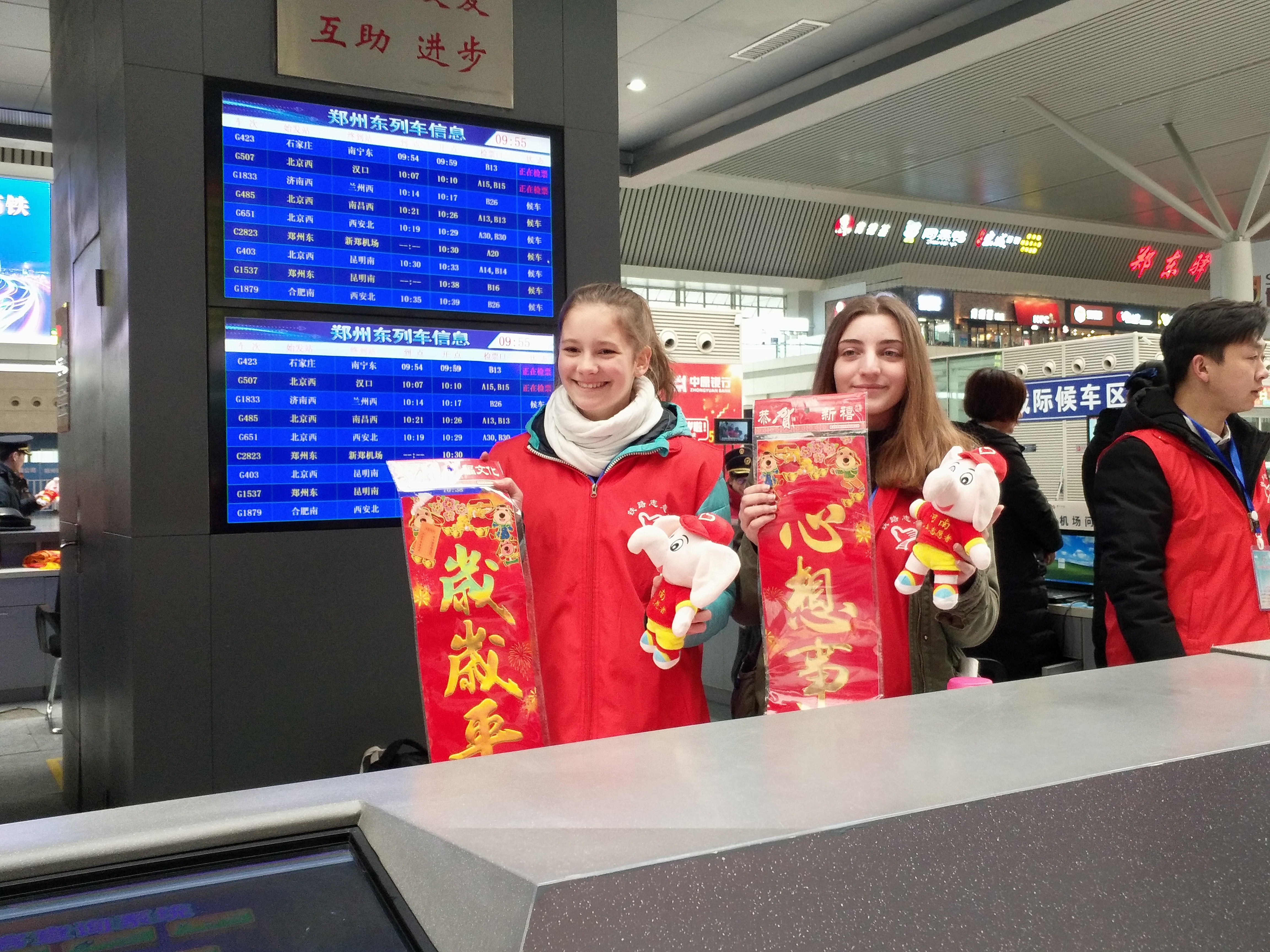 值得一提的是,今年郑州东站春运志愿者共招募95名,其中首次招募了15名外籍志愿者,他们分别来自巴基斯坦,韩国,德国,澳大利亚,意大利等国,为有需要的国际旅客提供咨询、指路等相关服务。