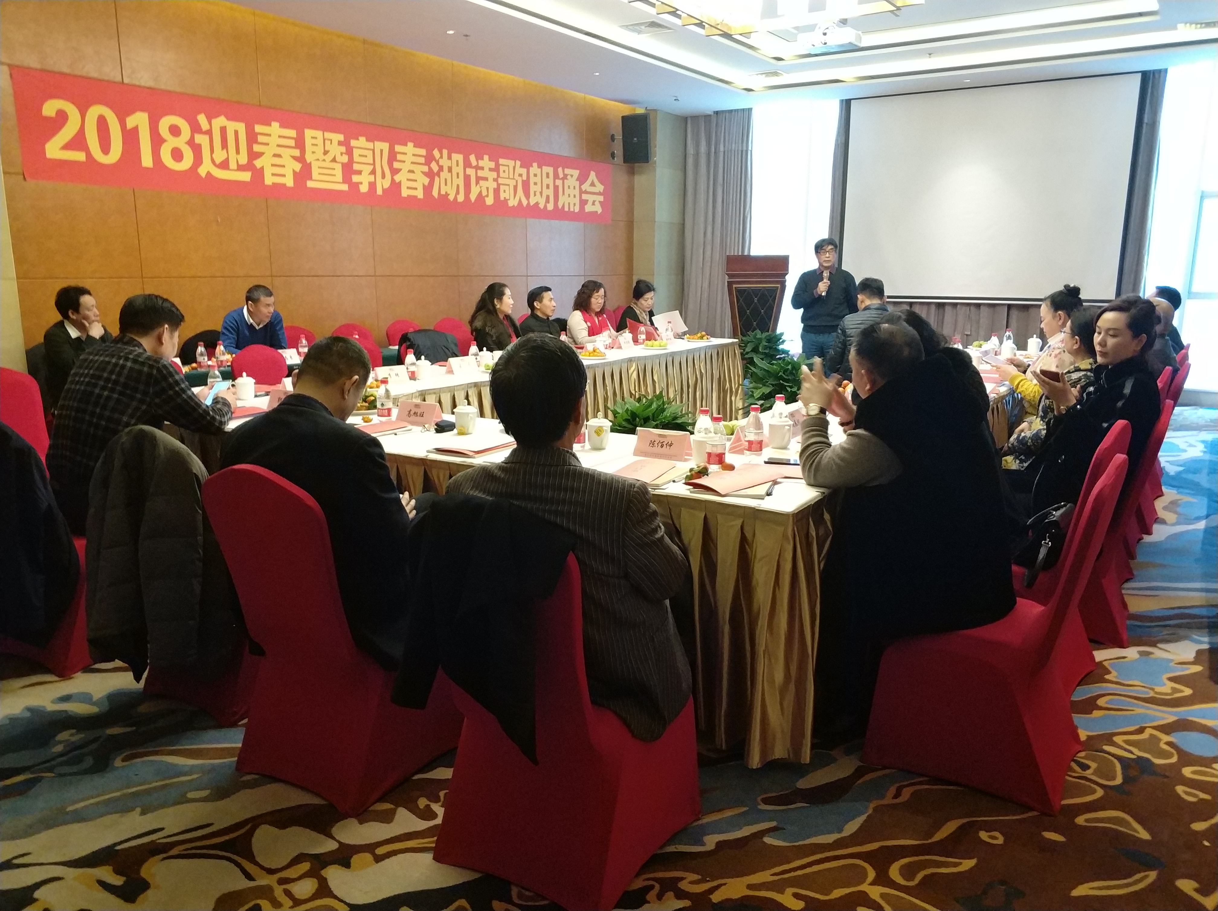大河网讯 2月9日,由世界汉诗协会河南分会主办,河南文艺出版社和大河诗刊社承办的2018年迎春暨郭春湖诗歌朗诵会在郑州举行。温文尔雅的诗词爱好者共聚一堂 ,诵新诗,辞旧岁,打破了冬日的寂寥,迎来新年新气象。(杨鑫阳 张文化)