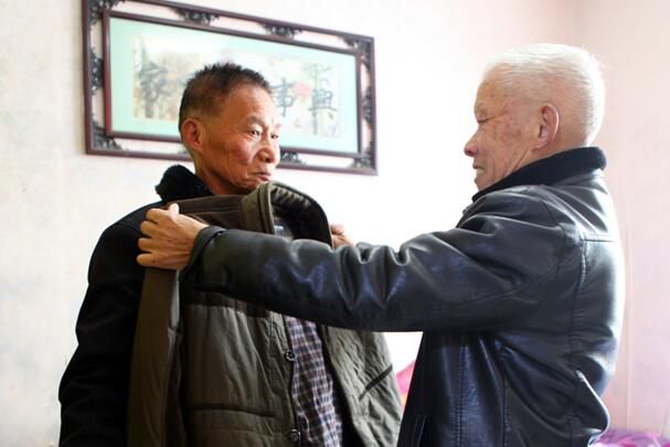 吃完饭,郭纪荣拉上坐在身边的二弟郭三网朝卧室走去,拉开衣橱,拿出两件军绿色新棉衣,放在他身前比划,并打着手势让他挑一件。 “这是小儿子买给我们过年穿的新衣服,让他先挑。”郭纪荣说。