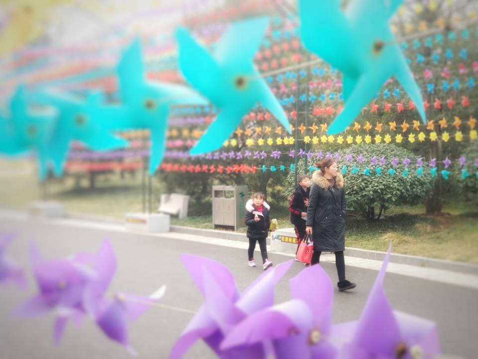 春节期间,郑州举办的几个文化庙会热闹非常。2月21日,在郑州绿博园中原大庙会上,游客跟随着“春姑娘”的脚步,鼓迎春,转狗运,过大“年”。游客们不仅能赏民俗、看花灯,观看到社火表演,传统武术,传统乐器演奏等特色节目,还能看到琳琅满目的手工制品。民俗艺人“与时俱进”,专门制作了糖人狗、面具狗、念珠狗等吉祥物来吸引游客的眼球。五颜六色的风车和响亮的锣鼓把欢乐和笑声一起抛向空中,市民们带着家人朋友悠闲地漫步在庙会上,流连忘返。