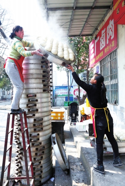 核心提示|任师傅夫妇因为馒头做得好,在郑州市国棉三厂一带已小有名气。昨日,记者在热心市民的指引下来到了他们经营的馍店,店门口依次向上码放的蒸笼常常成为街边一景,最高曾达38层,四五米高。他们一路走来,凭着勤劳,靠着奋斗,抚养4个子女长大,安稳幸福的小日子过得红红火火。