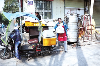 提前订馍的客户很多,比如附近的饭店、超市,还有一些建筑工地,馍一出锅,王女士装到袋子内之后就给他们送过去。当天下午两点多,女儿把一家超市订购的馒头装好放在电动车上,王女士骑着车走在送货的路上,脸上满是幸福的笑容。