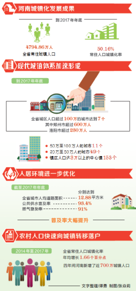 最近四年是河南城镇化发展速度快、质量高、城乡面貌变化大的四年,到2017年年底,全省常住城镇人口4794.86万人,城镇化率50.16%,实现了城镇人口超越农村人口的历史性转变。