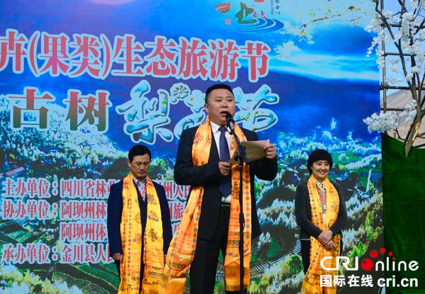 阿坝州人大常委会主任谷运龙宣布“2018金川古树梨花节”开幕,四川省林业厅巡视员刘兵、阿坝州人民政府副州长葛宁出席开幕式并讲话,金川县委书记卞思发代表东道主发表热情洋溢的致辞,金川县委副书记、县长朱锐主持开幕式。