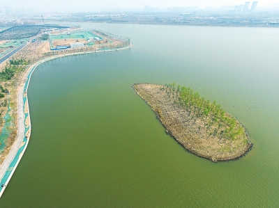 春分次日,暖风拂荡。沿商都路与万三公路交叉口向北,道路东侧,土方如岭蔓延。这里是七里河与贾鲁河交汇之处。穿过一二十米高的土岭后,视线瞬间开阔,一个波光粼粼的湖泊,出现在记者眼前。