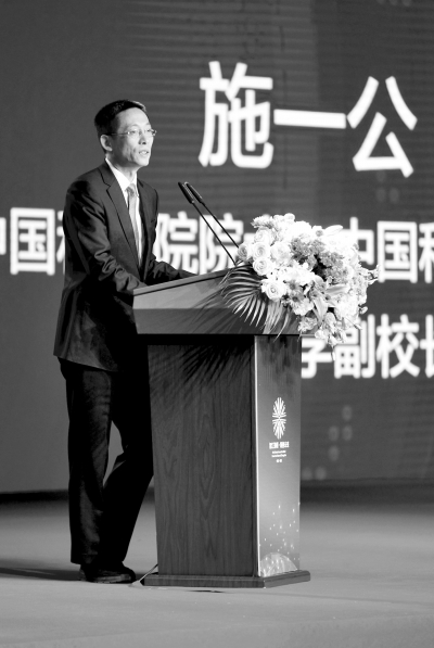 2017年11月23日,施一公在“智汇郑州”人才政策发布会上演讲。