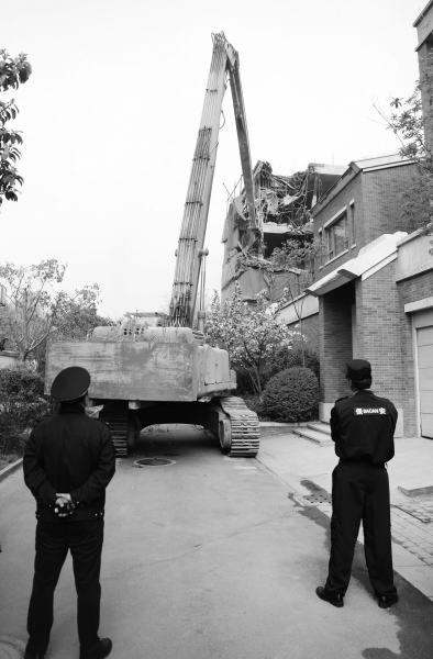 现场 破拆机挥“长剑”猛拆违建楼