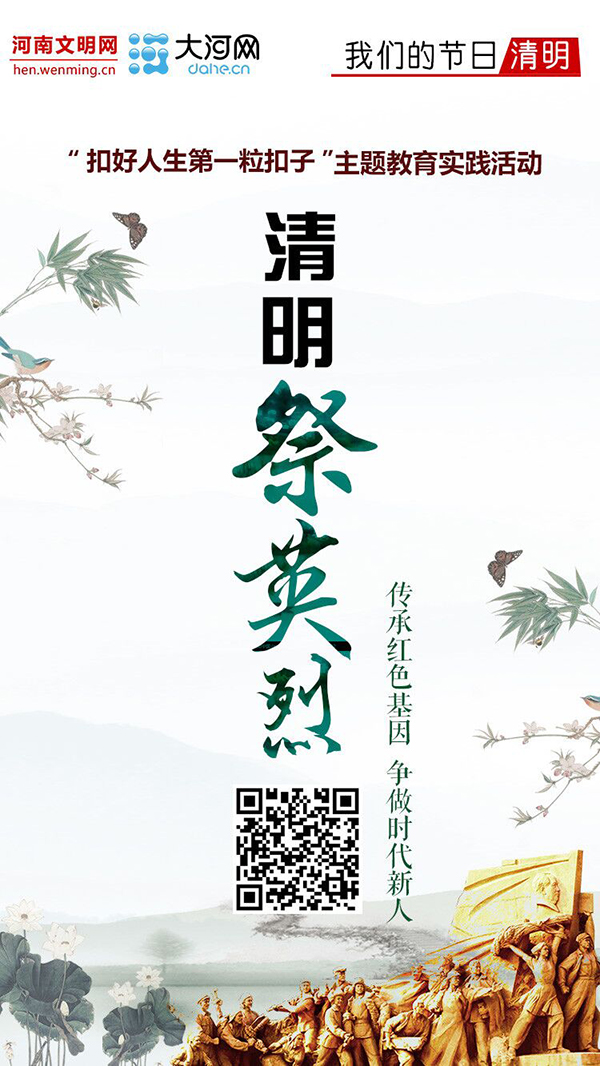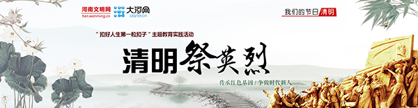 为深入贯彻落实党的十九大报告提出的“培养担当民族复兴大任的时代新人”要求,引领未成年人“扣好人生第一粒扣子”,近日,河南省文明办联合大河网、河南文明网开展网上“清明祭英烈”活动,引导未成年人慎终追远、缅怀先辈,努力争做“新时代好少年”。