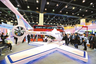 4月17日,第十二届中国(河南)国际投资贸易洽谈会上,众多客商在现场参观轻型直升机。⑨6本报记者邓放摄