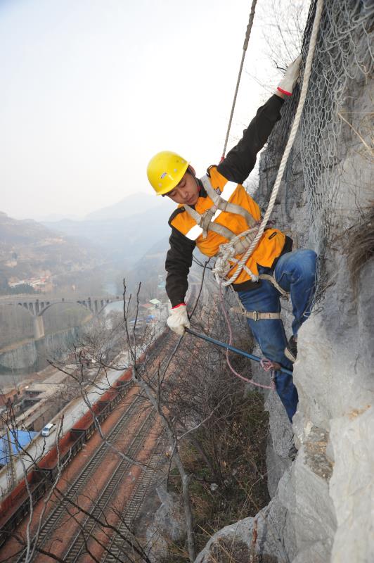 “严格来说,捅山工由桥隧工兼任,他们日常工作主要是对铁路了桥梁、隧道和涵渠的养护。”赵云说,但到每年春秋两季,他们摇身一变成为捅山工,利用山体植被尚不茂盛,便于观察的时机,爬上山顶,吊在悬崖上对山体进行拉网式检查,测定危石处所,清理隐藏在悬崖上松动的石头,为汛期行车安全提供保障。