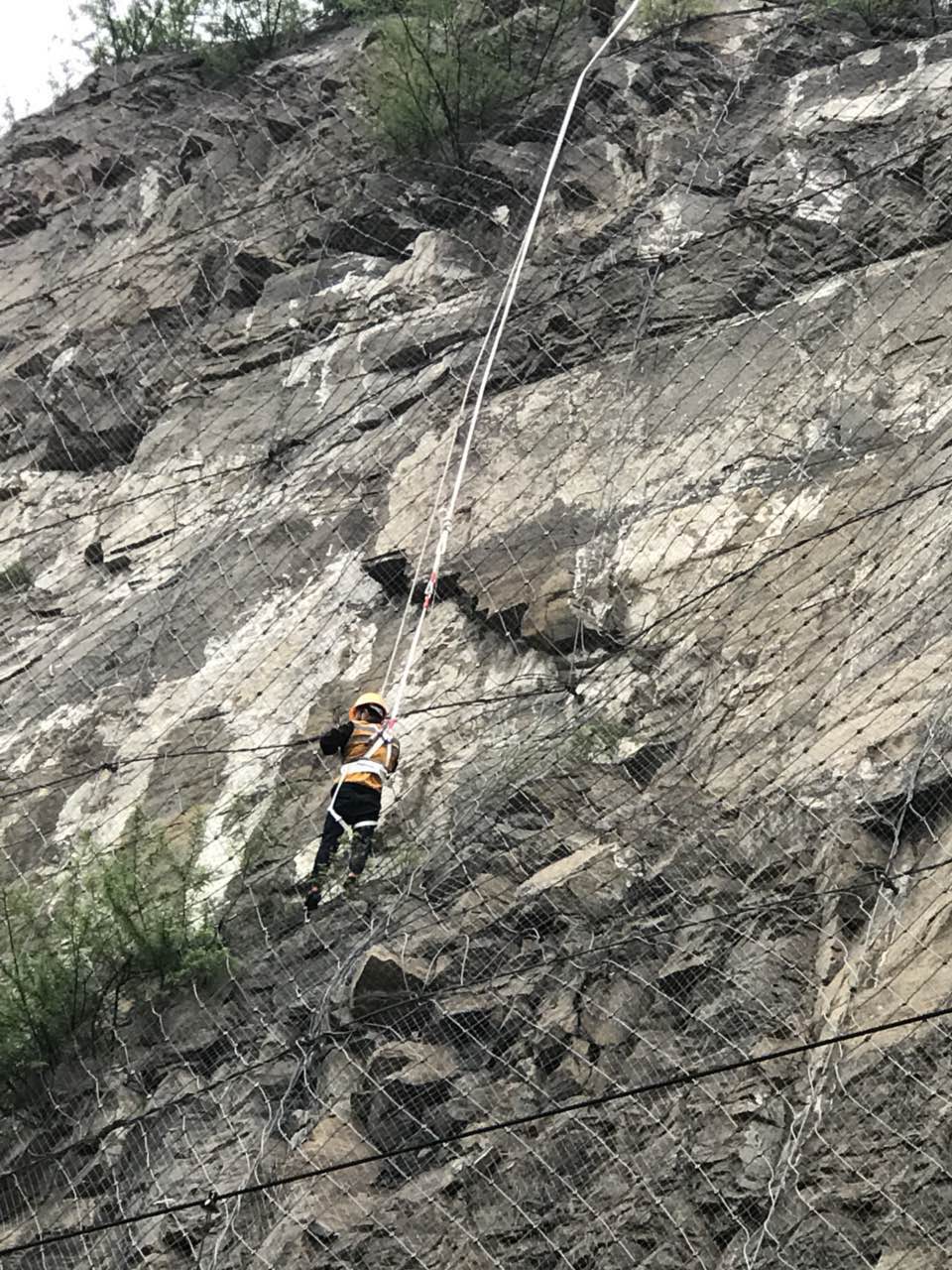 吊在悬崖上处理危石,不仅需要克服高空的恐惧心理,还要防止头顶上有石头掉下砸伤,脚下稍不留神,踩脱岩石,人会猛地悬空。
