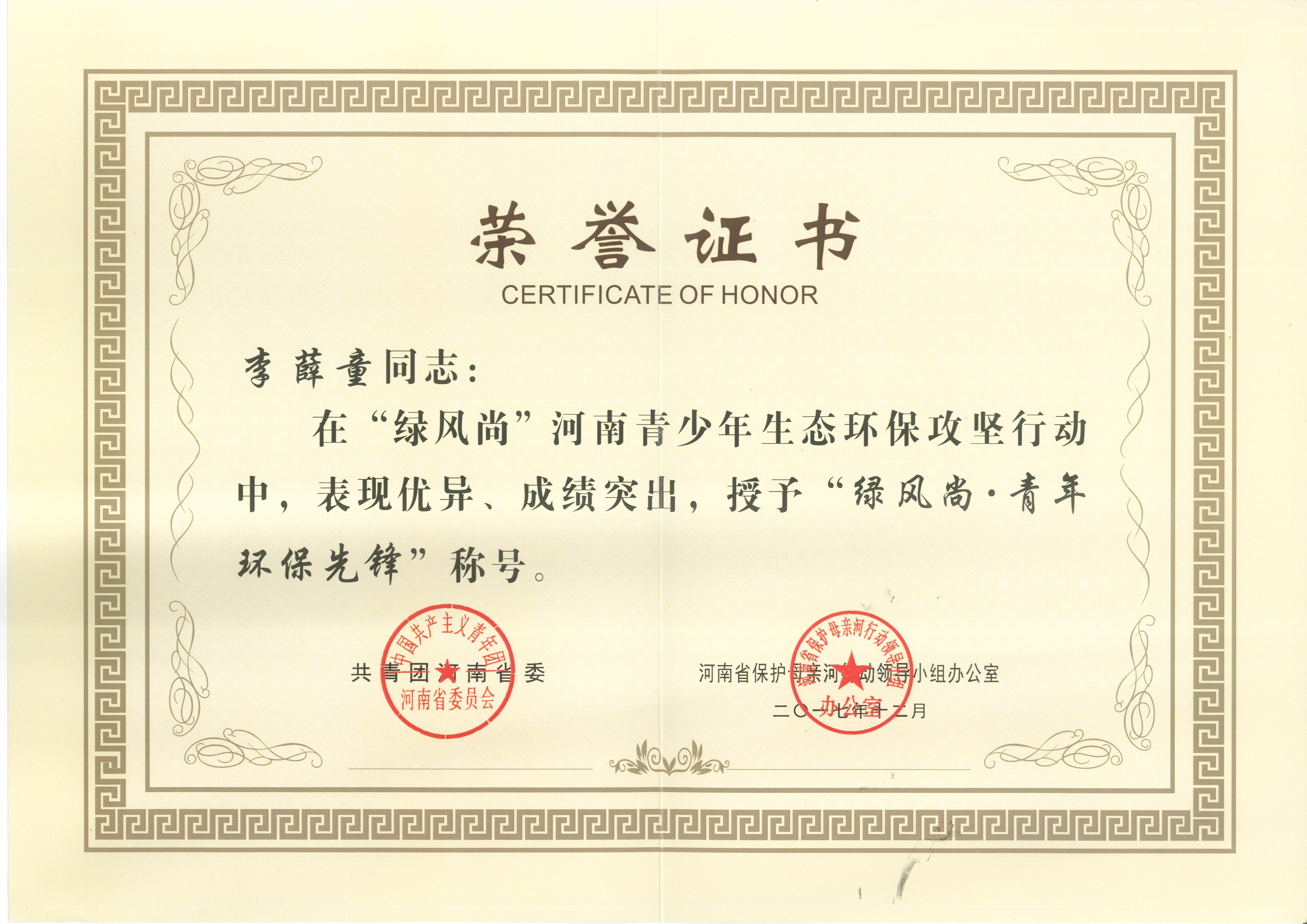 大河网讯(见习记者 臧小景)5月2日,在共青团河南省委公布的第22届"河南青年五四奖章"获得者名单中,90后的漯河市城乡规划局职工李薛童名列其中。