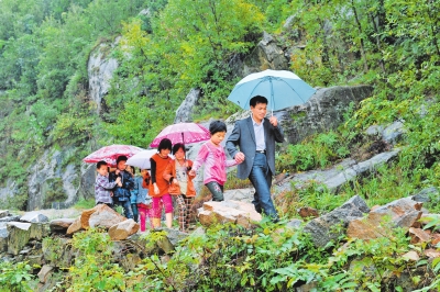从2001年到2006年,5年间,靠着一根扁担,踩着老校长的脚窝窝,张玉滚为孩子们挑来学习生活用品,也挑起了孩子们的希望。寒来暑往,他的足迹早已化作一串串动人的音符,回荡在黑虎庙的沟沟坎坎。