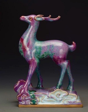 九色鹿:钧窑·九色鹿创意来自于敦煌莫高窟257窑壁画本生故事九色神鹿的形象,九色鹿寓意着世间的美丽、包容、诚信、吉祥、善良和正义,是人们心中精神的寄托和吉祥化身。