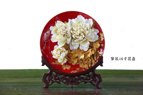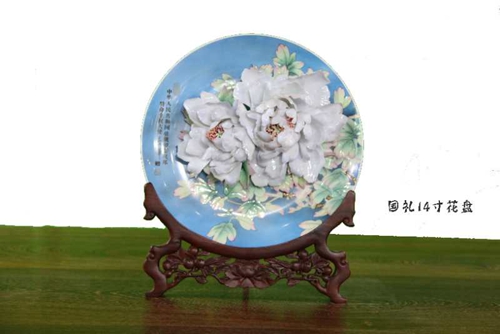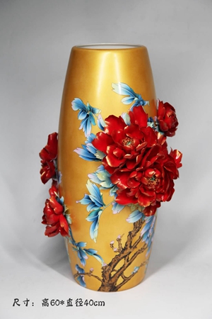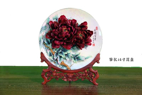 花开富贵:该作品是洛阳牡丹瓷创始人李学武大师精心创作的捏塑、浮雕与釉上彩绘完美融合的艺术精品。作品中雍容华贵的牡丹绚丽开放,高贵典雅,花香弥漫。“国香”之韵淋漓尽致,传送了一种最美好的祝福。