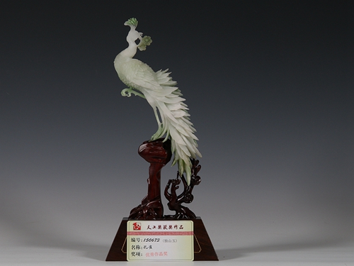 《孔雀》作品以孔雀造型为基础,淋漓尽致的展示了独山玉雕刻之美,工艺属于当代玉雕顶尖水平并荣获2016年天工奖优秀作品奖,是一件值得收藏的玉雕佳品。
