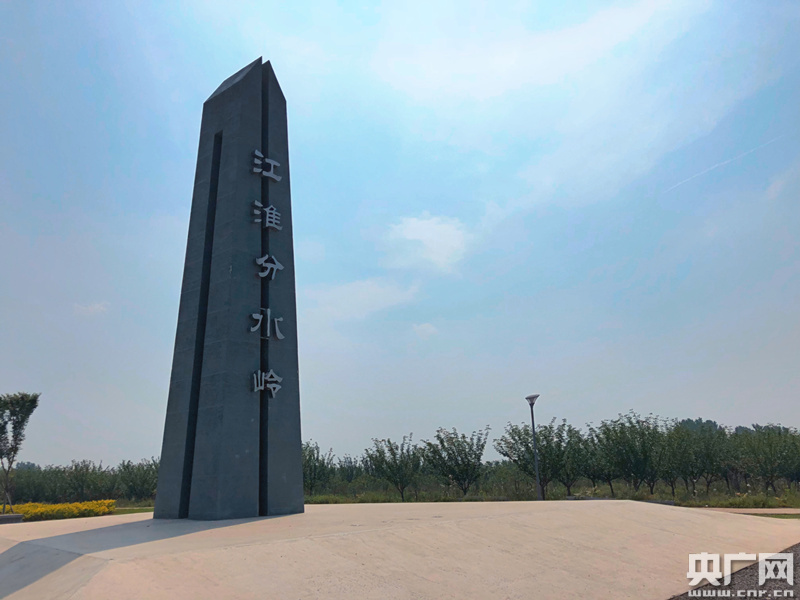 公园内的江淮分水岭标识。(央广网记者徐鹏 摄)