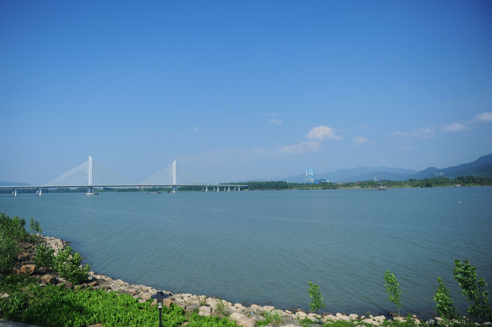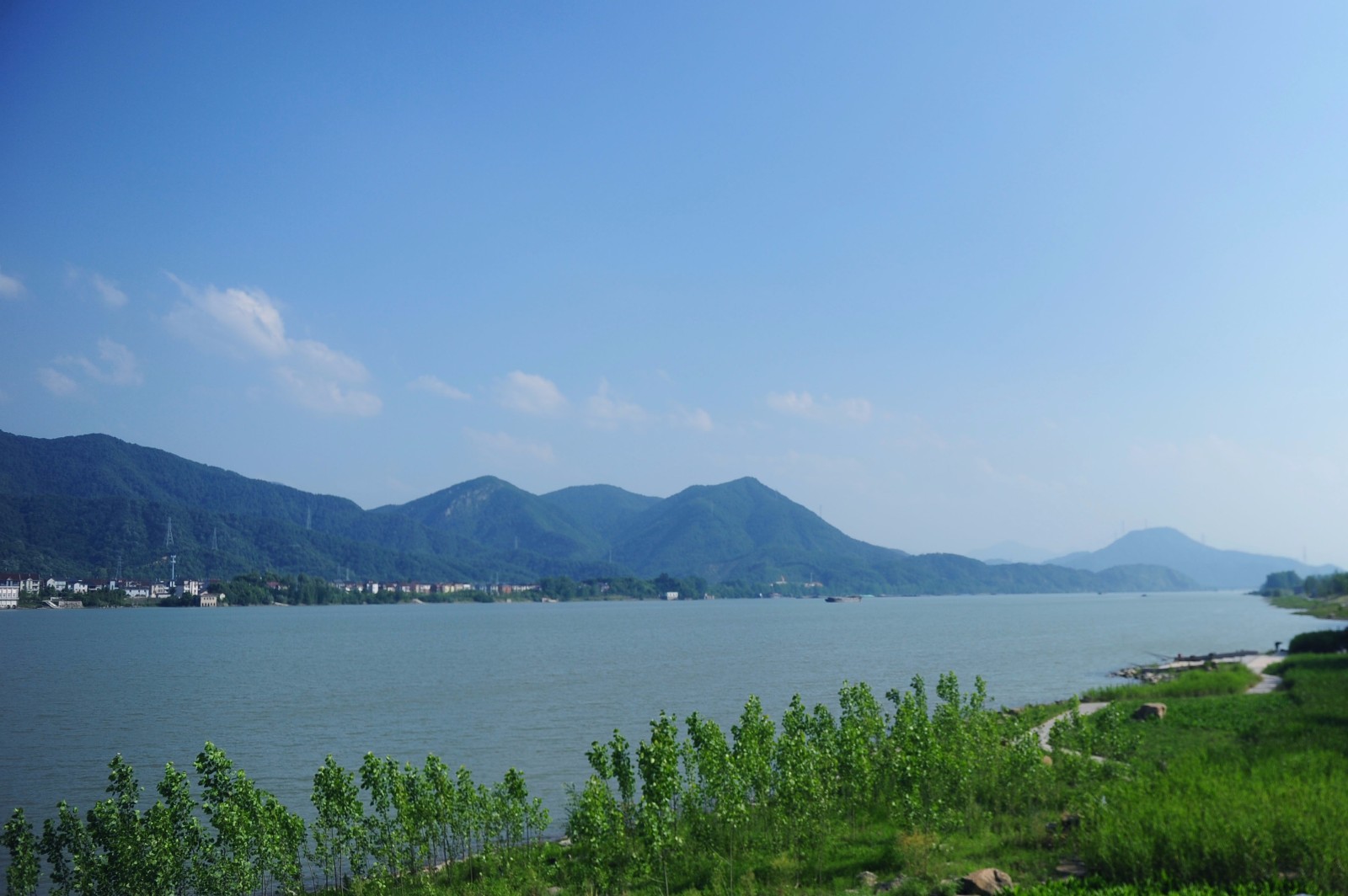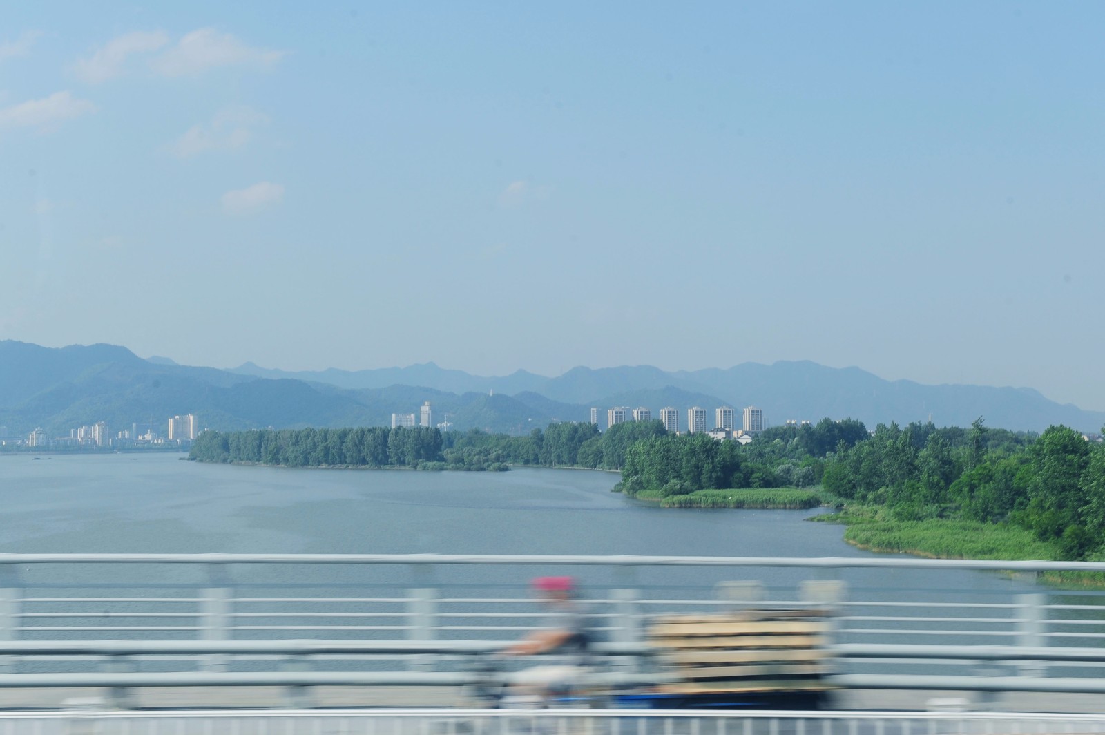 在富阳大桥远望 城市与山脉融为一体