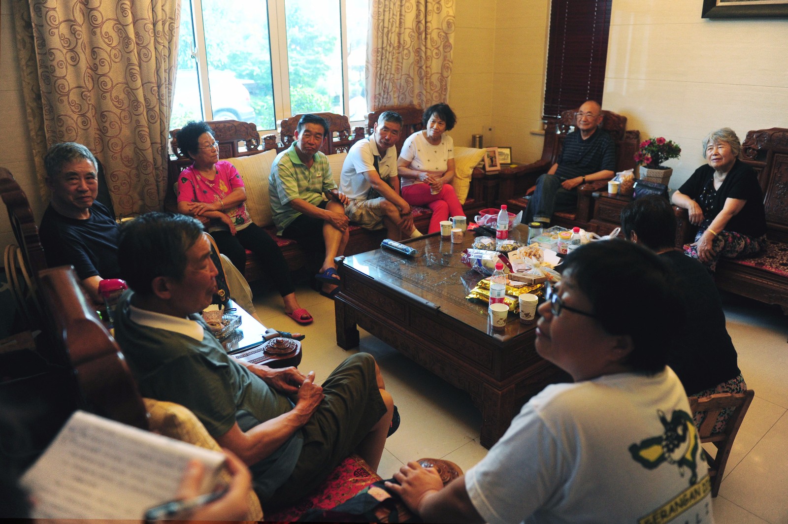 从各地赶来聚会的家庭成员围坐在客厅