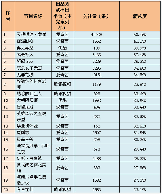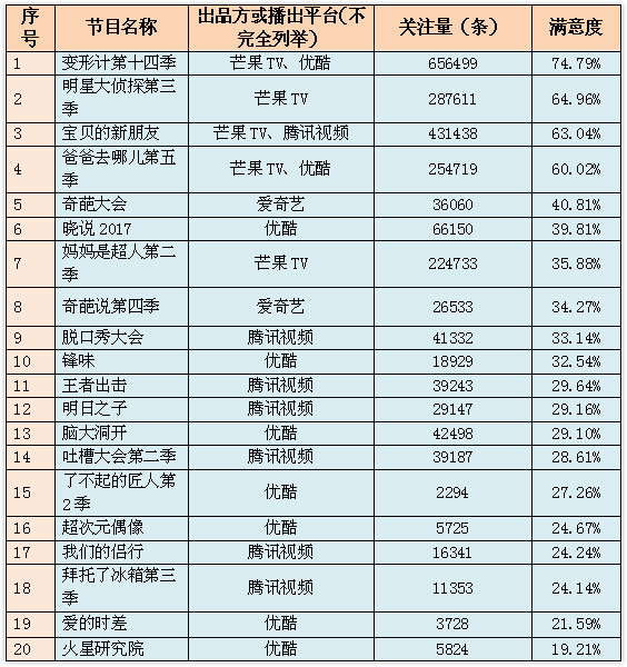 1. 网络综艺格局:芒果TV、腾讯领跑,优酷、爱奇艺为主力军