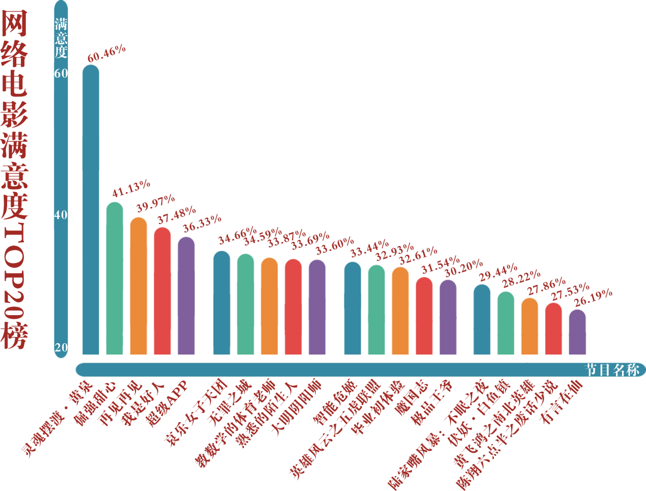 中国网络视频满意度博雅榜是由北京大学视听传播研究中心使用网络搜索引擎加语义分析软件技术,获得作品的点击量、评论量、情感分值和满意度。网络视频满意度博雅榜评估体系主要分为五个环节:筛选节目、划分类别、技术处理(确定目录、数据抓取、文本语义分析、满意度公式计算)、制表、分析。本次评估设网络剧、网络电影、网络综艺、网络动画和网络特色栏目五个版块。本研究团队选取的数据库主要来源于两个方面,一是基于国家新闻出版广电总局发布的《互联网视听节目服务持证机构名单》(截至2017年12月31日),在586个持证机构的网站上检索筛选,二是根据专家组的推荐意见选入符合要求的网络视频作品。研究团队分析评比了上一年度在全国主流媒体和商业网站播出的这五类网络视频节目,进行数据清洗、剔除重复项和不符合主题要求的节目后,最终选入1335个网络视频节目进入数据库。研究组将技术评估结果交给专家审定,然后再按照一定的比例进行加权计算,生成满意度排行榜单。