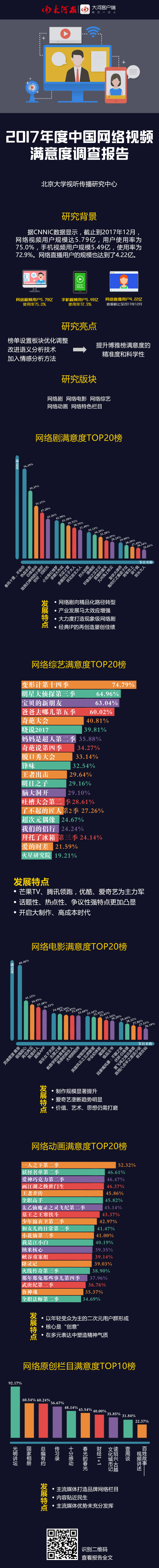 2017年,网络视频产业在内容生产、传播、营销等环节上持续发展,平台方的内容深耕意识进一步加强,制作方与平台方的合作进一步加深,网络视频IP的运营范围进一步拓展。网络视频产业在该年度呈现出怎样的发展趋势?网络视频的传播力和影响力如何?受众关注的作品具备怎样的特点?带着这一系列问题,北京大学视听传播中心组织了第五次中国网络视频满意度调查。