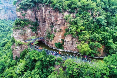 在经历了“战太行”“出太行”“富太行”三部曲之后,如今的太行儿女追逐着“美太行”的梦想。站位新时代,红旗渠舒展美丽的衣袖,变身国家5A级旅游景区,成为年接待游客超百万人次的全国红色旅游经典景区。太行民居、农家饭菜成了香饽饽,花椒、核桃、山楂等山货成了山里人创收的新途径,红旗渠传人用心血和智慧续写着新的传奇。