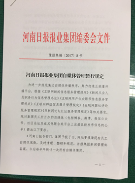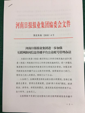三是规范网上传播秩序,加强网上生态治理,努力掌握网络斗争的主动权。通过深挖细查,将排查出的近万条不良信息一律进行了清理和删除,让网上生态愈发清朗。针对省委巡视组反映的低俗之风和虚假报道问题,组织开展打击虚假新闻、有偿新闻、新闻敲诈、低俗之风等“除四害”专项治理活动,做到有案必查、有错必究、责任到人。根据省委宣传部、省网信办“两个平台”清查治理的要求,河南日报编委会拿起“放大镜”,戴上“听诊器”,对所属媒体法人微博、微信、客户端和员工自媒体开设情况进行了全面摸底排查,制定出台《关于进一步规范舆论监督报道和舆情处置工作的意见》《报业集团加强新媒体平台管理整改台帐》《关于进一步加强采编人员自媒体管理的暂行规定》《河南日报报业集团进一步加强互联网新闻信息传播平台公众账号管理办法》等文件,编印《宣传管理手册》《新闻管理手册》等内部资料,老老实实抓整改,实实在在看效果,从根源上杜绝了“砸锅党”和“两面人”现象,并培养能量“网红”,加大网上正面信息的推送,集聚一批穿着“便衣”的自己人队伍,让网上正面声音更加响亮,影响到“沉默的大多数”,真正让主流意识形态主导网络空间,确保把意识形态工作的主动权牢牢抓在手上。