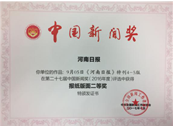 主题报道精彩纷呈。河南日报牢记习近平总书记“让中原更加出彩”的殷切嘱托,围绕总书记提出的“打好加快产业结构转型升级、坚持创新驱动发展、强化基础能力建设、推动新型城镇化”这“四张牌”,提前谋划,重点关照“三区一群”建设、打好“四大攻坚战”、开发“多式联运”、打造“米字形高速铁路网”等重大主题,推出一系列叫得响、传得开、立得住的精品力作。8个版的“兰考脱贫纪”特刊、万余字的长篇报告文学《兰考春光奏鸣曲》以及“返乡下乡创业助力脱贫攻坚”“春光奏鸣曲”等系列报道接连不断,引发强烈“社群共振”;“脱贫攻坚日记”被中宣部称赞“以实际行动深入践行‘走转改’,用小切口展现大主题,用百姓语言描绘大战役”,与特刊“春江花月夜最忆是杭州”一道,双双荣获第27届中国新闻奖二等奖;围绕“一带一路”倡议,独家策划“空中丝绸之路”报道,以多角度透视、全方位解读的形式,在全国引起重大影响,并做好“陆上丝绸之路”“网上丝绸之路”的相关报道;持续报道南水北调工程《一泓清流走雄安》《雄安之水中原来》等稿件主题鲜明、文采飞扬;“厕所革命”“铁腕治污保卫蓝天”“百城建设提质工程”“现代化经济体系系列访谈”“《习近平谈治国理政》第二卷系列评论”等跟进热点,深入阐释解读,有颜值、有思想、有内涵,抓住了当前国家的热点和省委中心工作,展示了河南新成就、新形象的同时,发挥了举旗定向、舆论引领的作用,彰显党报媒体中流砥柱和定海神针的作用。