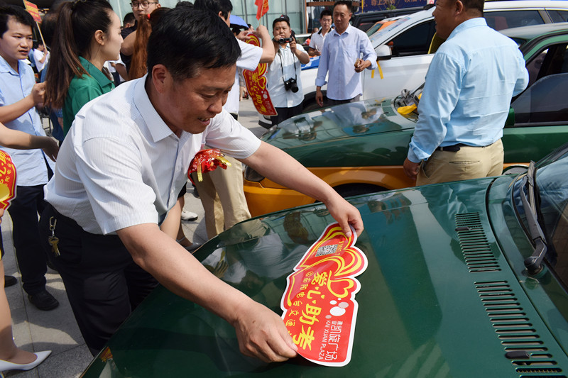 南阳市委宣传部副部长武安林为出租车贴上“爱心助考”标志