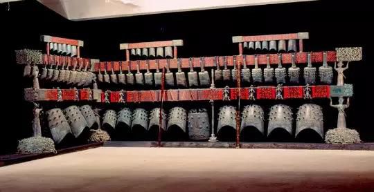曾侯乙编钟作为礼乐之器,其巍峨、完美的“曲悬”架式,与配套编磬,三面悬挂,完整、明确地呈现了周代诸侯的“轩悬”制度,并与其他青铜礼器一起交织出一幅近于现实的礼乐场景。
