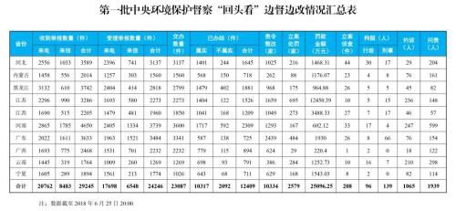 截至6月25日晚20:00,6个督察组共收到群众举报29245件,受理有效举报24246件,经梳理合并重复举报,累计向被督察地方转办交办23087件;各被督察地方完成查处12409件,其中立案处罚2579家,罚款25096万元;立案侦查208件,拘留235人;约谈1065人,问责1939人。