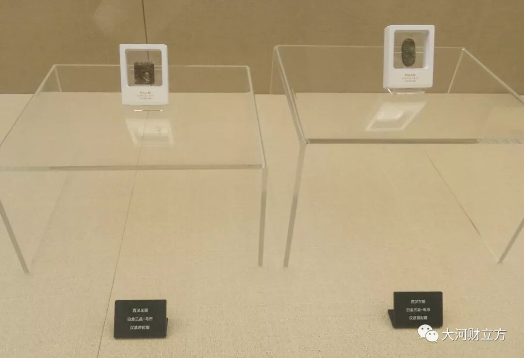 在钱币展的第一展位上,摆放着一枚标注着白金三品的汉武帝时期龙币,其因有龙的纹样而得名,最有趣的是,这枚钱币的背后有一串清晰的外文字母。