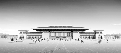 站房入口处的城门意象、两侧对称的高台形态,以及屋檐和候车厅墙面的葛天氏乐舞浮雕壁画,力求再现长葛历史的厚重和沧桑,整体形象大气稳重,以现代质朴的建筑语汇描绘古城的悠远意境。