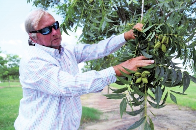 日前,在美国佐治亚州奥西拉,山核桃种植户兰迪·哈德逊在自己的种植园中展示未成熟的山核桃。中国被迫对包括山核桃在内的部分美国商品加征关税。哈德逊说,美国的贸易保护主义举措让他感到忧心和愤怒,他担心自己过去20年的心血可能毁于一旦。据新华社