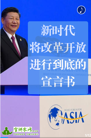 4月10日,习近平主席在出席博鳌亚洲论坛2018年年会并发表了主旨演讲。习近平主席在演讲中详细阐述了中国改革开放的伟大成就、重要经验和启示、世界意义和影响,表达了中国推动对外开放再扩大、深化改革再出发的决心,提出了新时代中国改革开放的重要举措。