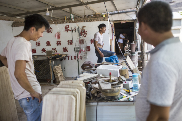 图说:在堌阳镇徐场村,仅有102户村民的村子里超过半数家庭都在从事古琴制售行业