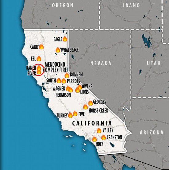 据美国CBS报道,当地时间8月7日,加州山火中规模最大的“门多西诺双重山火”继续以惊人的速度蔓延,目前火灾面积已超过29万英亩(约合12万公顷),成为加州历史上燃烧面积最大的山火。火灾已导致13000名居民撤离,另有8000名居民等待疏散。